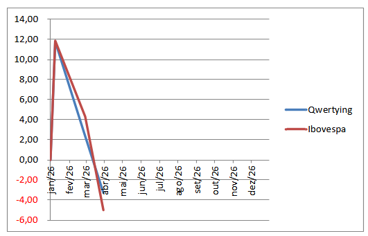 No acumulado de 2026, a carteira QWERTYING registra uma alta de +10,84%, um desempenho similar ao do Ibovespa, que avançou +11,12% no mesmo período.