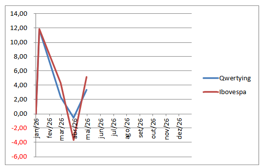 No acumulado de 2026, as operações QWERTYING “Swing Trade” registram uma alta de +16,93%, um desempenho superior ao do Ibovespa, que avançou +17,55% no mesmo período.