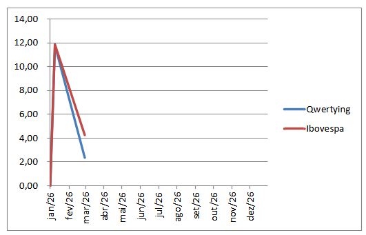 No acumulado de 2026, a carteira QWERTYING registra uma alta de +14,14%, um desempenho similar ao do Ibovespa, que avançou +16,11% no mesmo período.