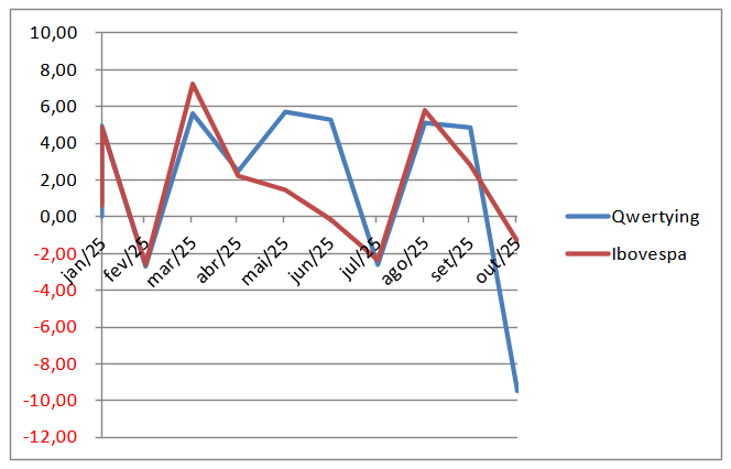 É relevante destacar que o desempenho histórico da carteira QWERTYING, desde janeiro de 2021, não constitui garantia de resultados futuros. O mercado acionário é influenciado por múltiplos vetores, como variáveis macroeconômicas, fatores geopolíticos e eventos extraordinários — incluindo pandemias e desastres naturais — que podem alterar significativamente a dinâmica dos preços.